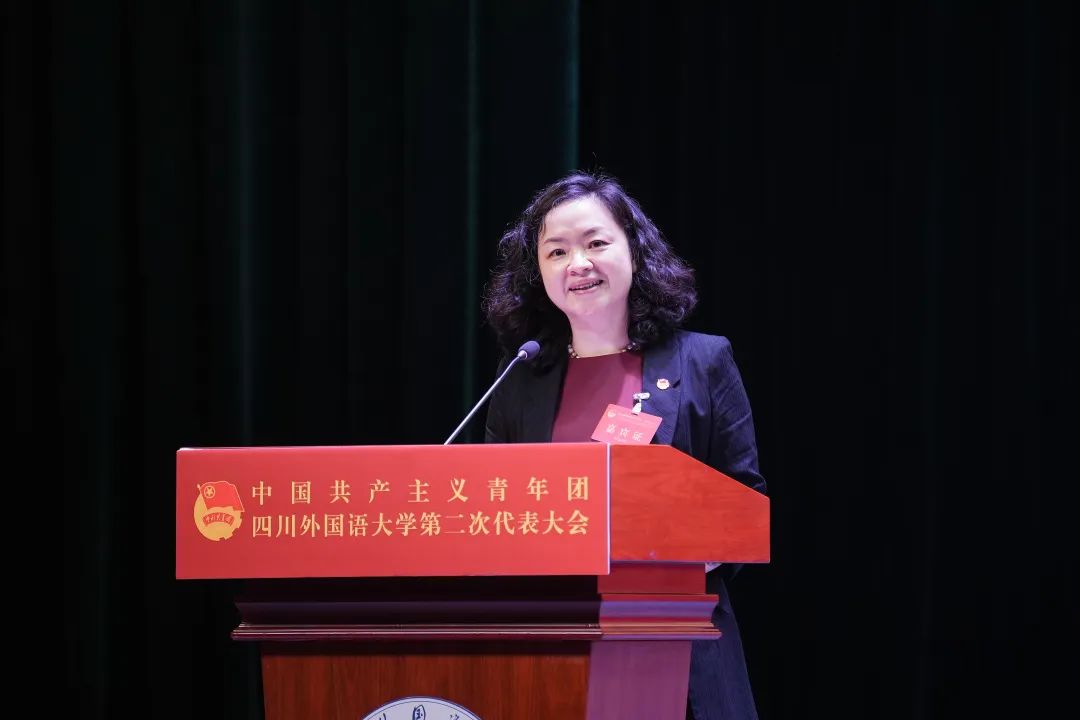 校党委书记邹渝在大会上向全体团学干部、共青团员、青年大学生致以问候,并发表讲话。他指出,共青团太阳集团tyc122cc第一届委员会立足共青团“三个根本性”问题,从严治团,在组织动员青年、教育引导青年、服务联系青年、维护青年合法权益等方面发挥了桥梁和纽带作用,为学校争取青年人心、汇聚青年力量、完成中心工作等方面作出了应有的贡献。邹渝向川外青年提出三点希望。一是川外青年要准确识变,胸怀“两个大局”,做追梦路上的开拓者。要提升国际视野,准确认识到“船到中流浪更急、人到半山路更陡”;要准确认识到中华民族伟大复兴绝不是轻轻松松、敲锣打鼓就能实现的,必须进行具有许多新的历史特点的伟大斗争;要准确认识到肩负的重大历史使命和时代责任。在面对前进道路上的荆棘坎坷,要迎难而上,要有越是艰险越向前的信念,做一个有狼性血性、敢闯会创的新时代川外人。二是川外青年要积极应变,心怀“忧患意识”,做追梦路上的奋进者。要树立忧患意识、危机意识,不断增强知识更新的紧迫感,如饥似渴学习,既扎实打牢基础知识又及时更新知识,既刻苦钻研理论又积极掌握技能,努力成为“一精多会”“一专多能”的复合型国际化人才。要坚持学以致用,深入社会、深入基层,在社会的大学校掌握真才实学,锻造本领能力,努力成长为可堪大用、能担重任的栋梁之材。三是主动求变,培养“担当精神”,做追梦路上的奉献者。要站在新时代高度,把准时代的脉搏,主动求变,突破从自身角度、从理想状态认识和理解世界的局限,担当时代责任和使命、在奋斗中练就过硬本领、在实践中不断锤炼品德修为,不负时代所托。