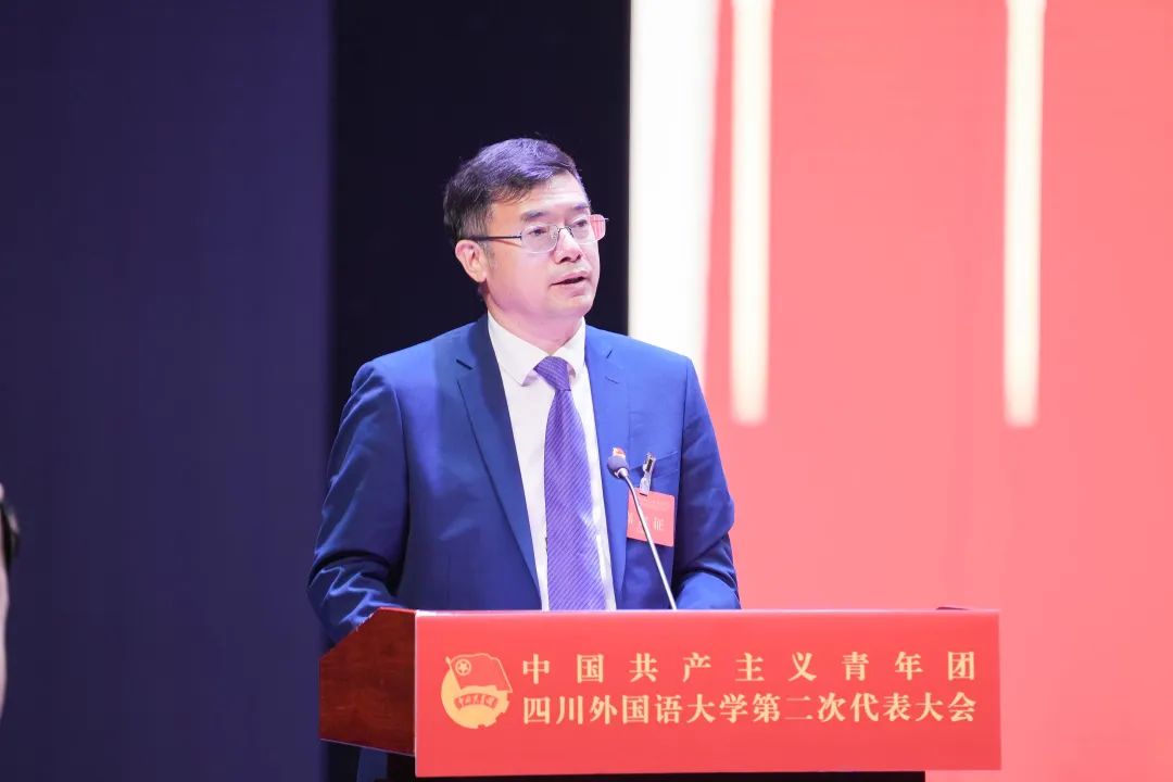 陈派同志代表共青团太阳集团tyc122cc第一届委员会作题为《高举团旗跟党走 薪火传承勇担当 团结带领全校团员青年为建设特色鲜明高水平应用研究型外国语大学贡献青春力量》的工作报告。报告对过去6年的工作进行了全面客观的总结,对新时代如何更好发挥共青团的职责使命进行了阐述,对未来川外共青团的工作内容进行了科学规划。